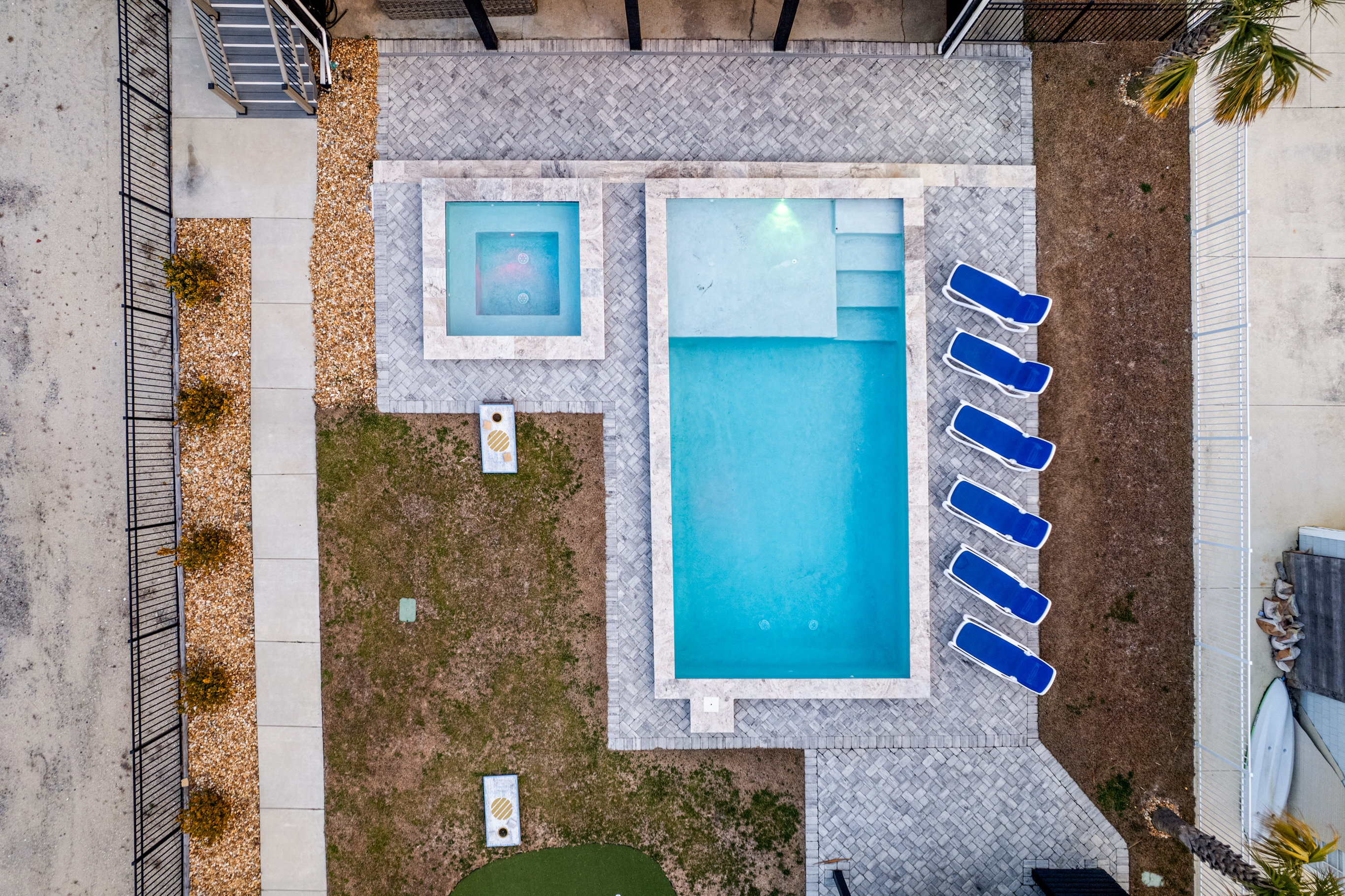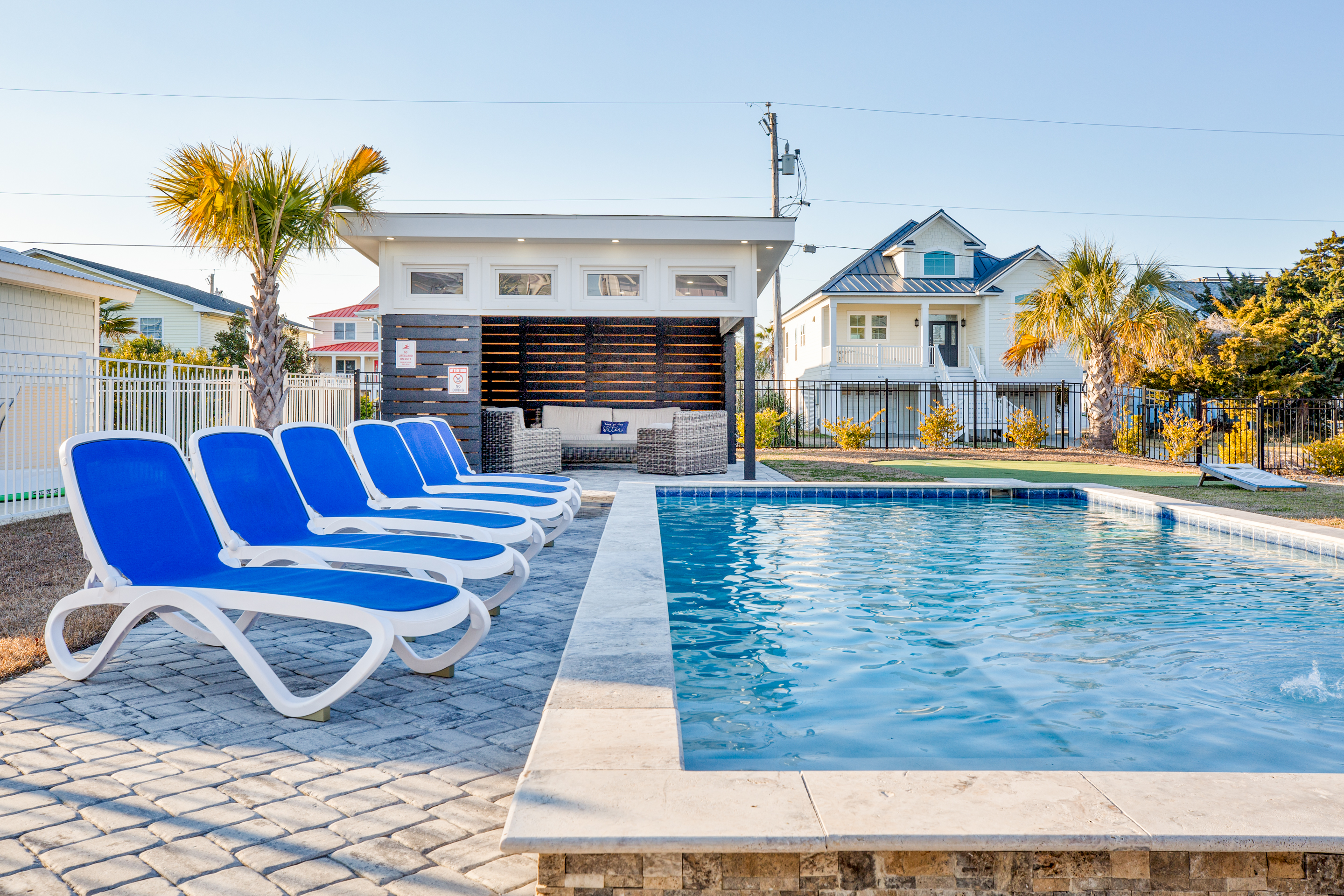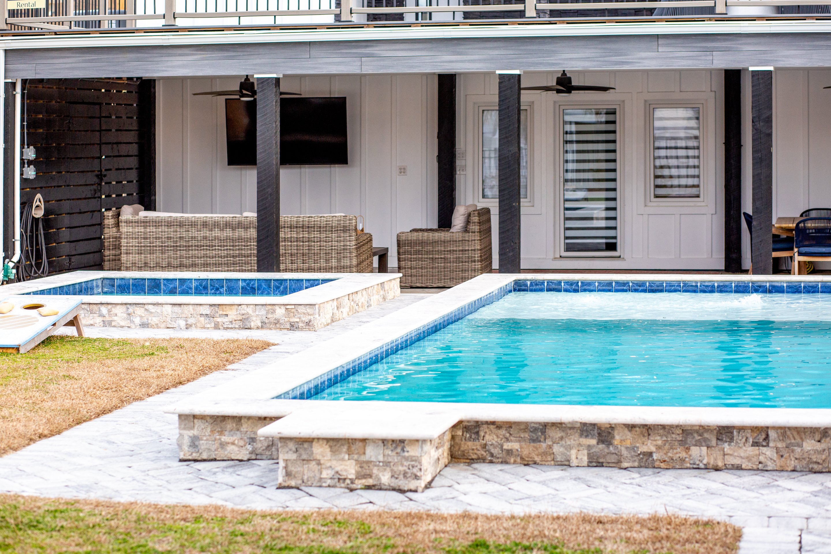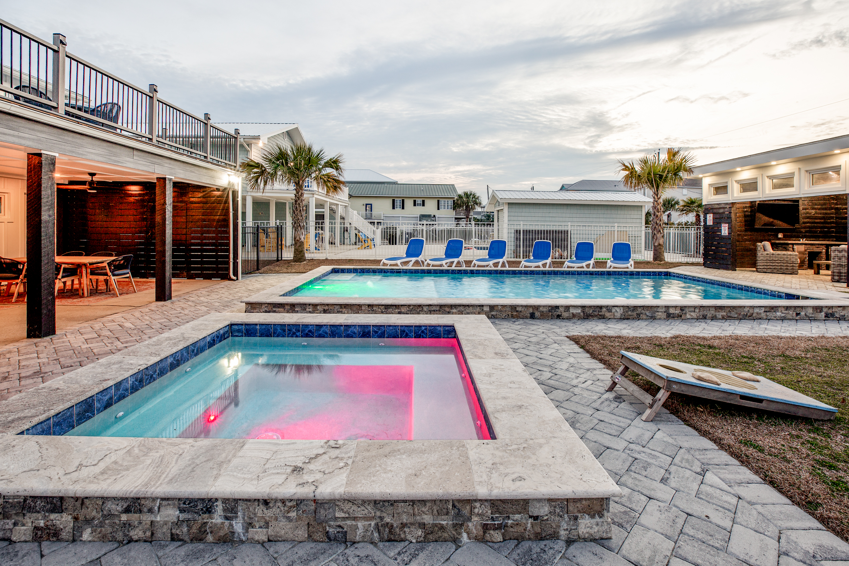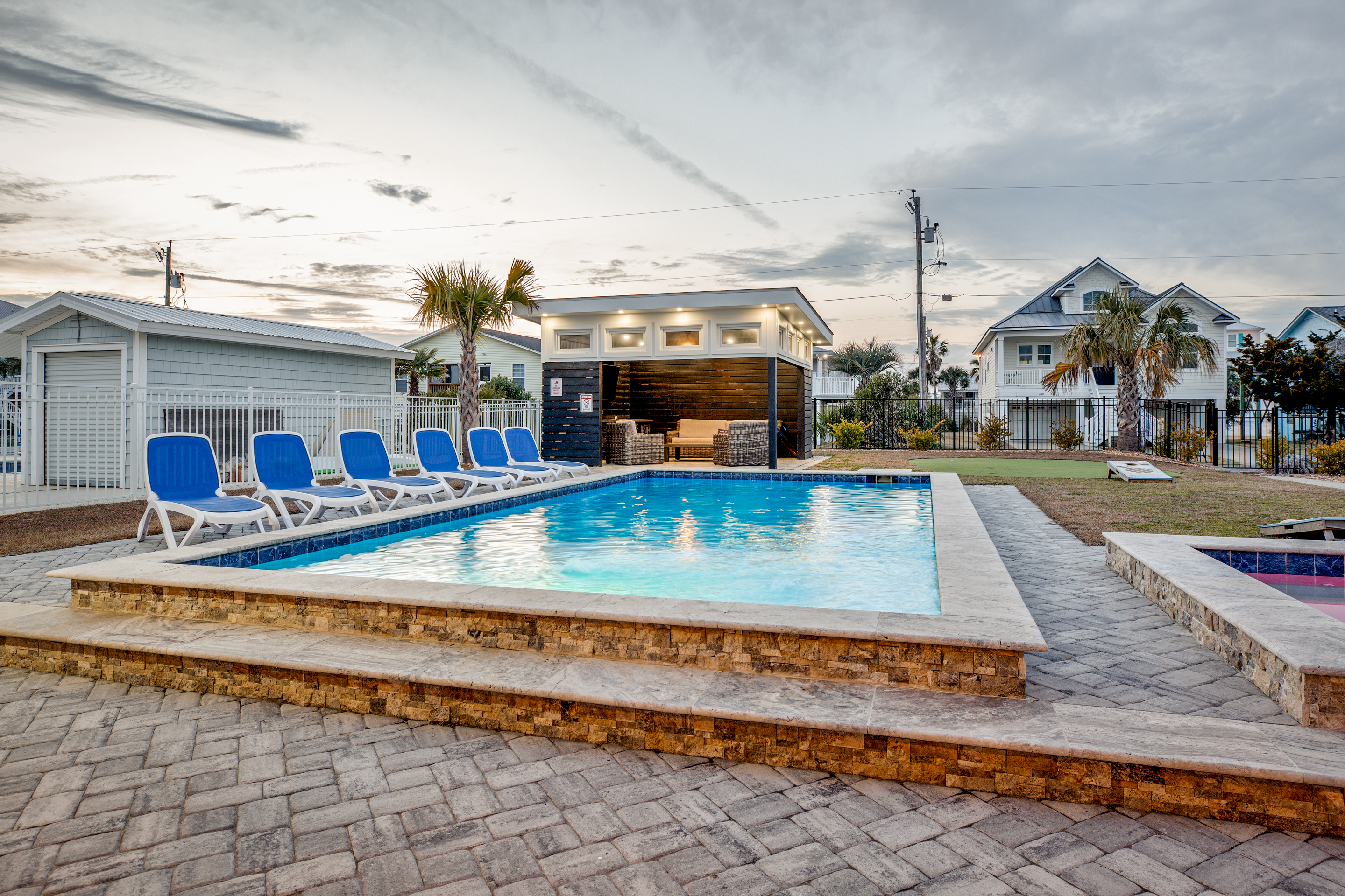 Open year-round. Pool heating is available in spring and fall (Apr 1–May 31, Sept 1–Oct 31) for an additional $875 + tax per week. Heating is only effective when temperatures—day or night—are forecasted to be above 60°F, so we recommend checking the forecast closer to your stay (but at least 5 days prior) before adding heat.